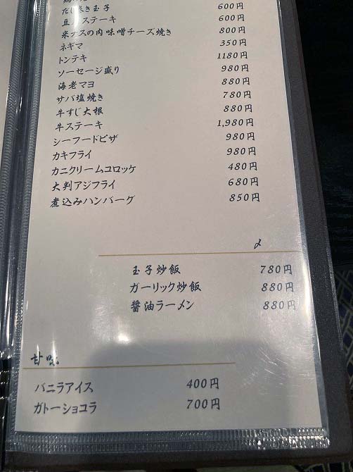 雰囲気は想像していたよりも大衆ぼっい、少し安心する。まずはビールを注文し、メニューに目を通す。