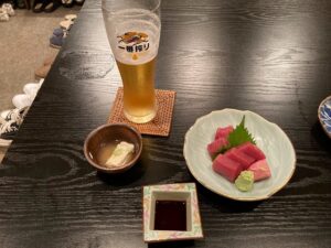 メニューの中から本まぐろのお刺身980円。文句なくまぐろの味がして美味い。