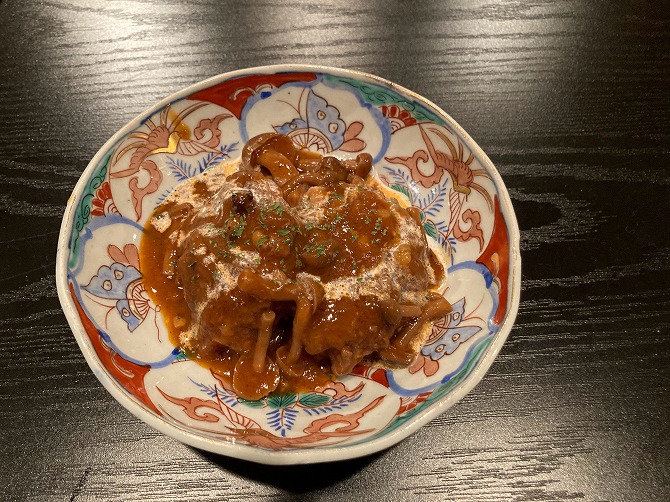 続いて煮込みハンバーグ850円。絶妙なデミグラスソースに肉汁たっぷりのハンバーグが美味い。