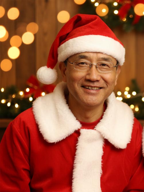 四代目はサンタクロースに変身して、孫二人にクリスマスプレゼントを届けます。
