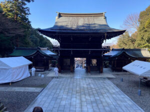 お正月の伊奈波神社参道の両側にはズラズラっと屋台が並んでいる光景が広がりますが、まだ何も設営されていません。