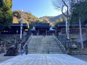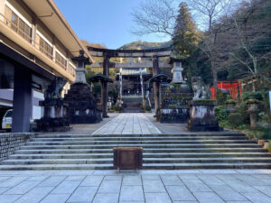 お正月には、人、人、人の光景しか見られない本殿に続く石階段もご覧の通り。参道入口から本殿まで今日は数分でたどり着きました。「2025年一年間のお礼」と「2026年一年間の家内安全・商売繁盛」を神々に祈願しました。