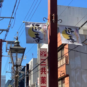 安田屋家具店が立地する美殿町商店街にも「迎春」の飾り付けをします。