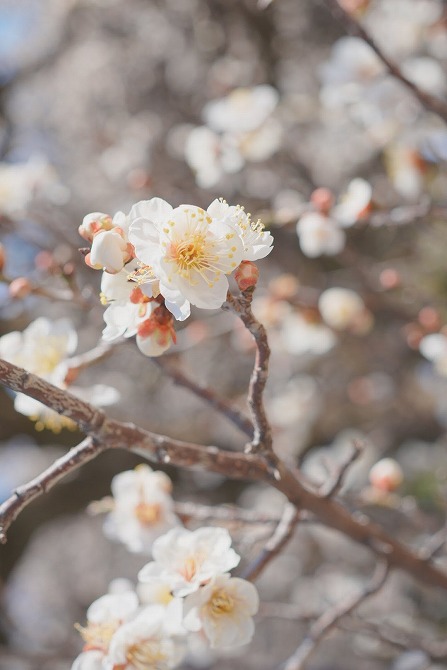 安田屋家具店から徒歩10分程度に位置する「梅林公園」の千本以上の梅もチラホラ咲き始めています。早咲き種は満開であり、全体的には4割ほどの開花です。