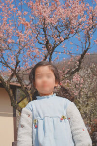 ポカポカ陽気に誘われて、娘一家が遊びに行ったようで、梅の前にいる孫の写真が送られてきました。
