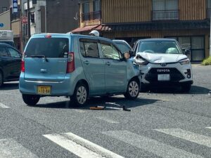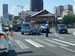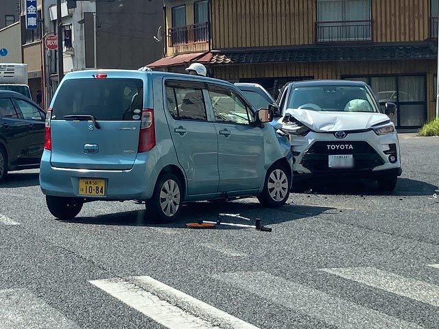 安田屋家具店から数分の三叉路でおきた交通事故発生直後に現場を通過した四代目。