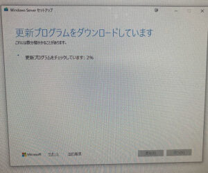ところがすんなりと行くはずがありませんでした。インストールするための容量確認ができないとか、プロダクトキーの確認ができないとかの理由で中断してしまいます。何度試してもダメでした。