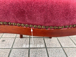 破損していたS字型バネは、折れていたのではなく木枠取付部分が外れていただけでした。元通りに取付を行い修復しました。中身ウレタン材は新しい材料に取替えました。
