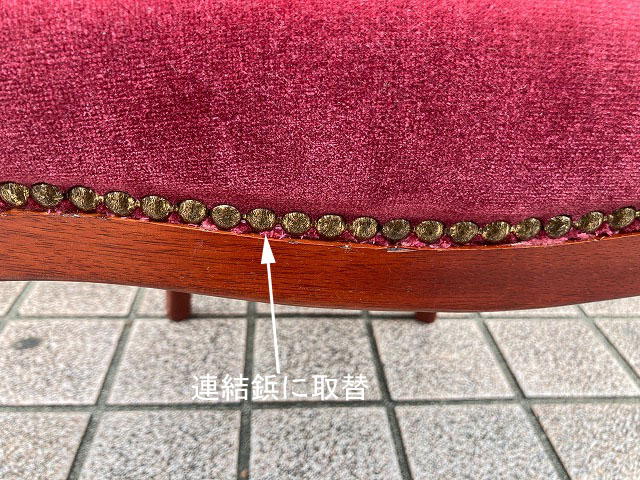 張替に使用した布地は、張替前と同じモケット生地で色合いも同色にしました。