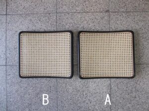 先日お預かりしたチェスカチェアー型の座高が高いバーチェアー座面籐シート張替が仕上がりました。