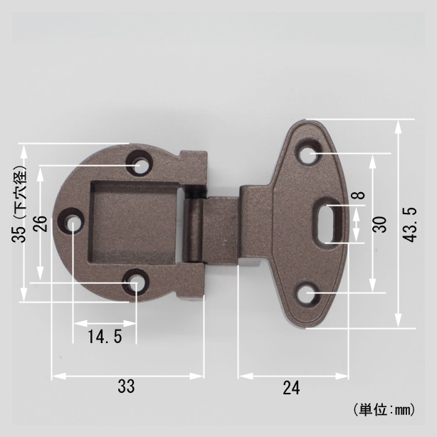 ほぽ同じ金型を使用して製作されたと思われるRABBIT刻印と形状が同じ代替金具がありますので、その金具で代替えできます。ただし取付ネジ位置が若干ずれていますのでご了承ください。