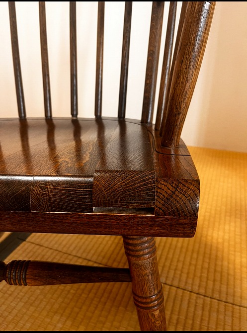 座面板は一枚の板で作られているのではなく、何枚かの板を接着接合して座面板にしています。今回その板と板との接合部の接着力が、経年劣化・温度湿度の影響により弱まり、剥がれてしまったことが原因です。