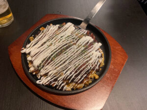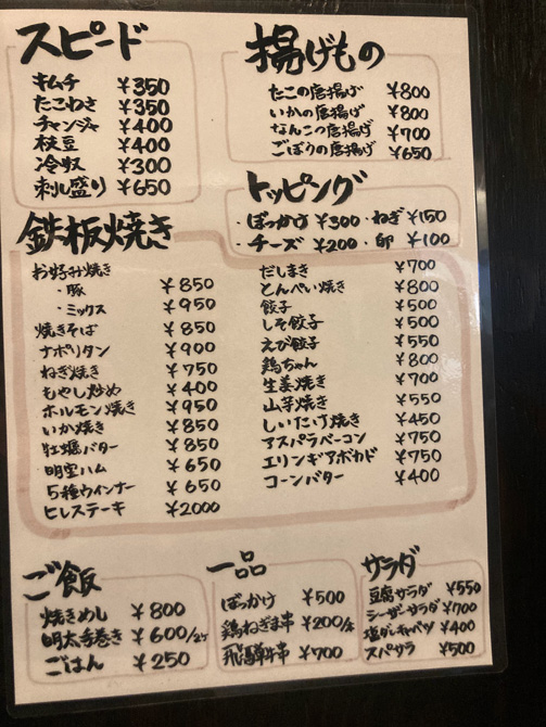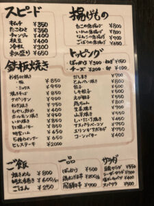 気になっていたが伺う機会が無かった。今日、四代目が理事を務めている協同組合の理事会があり、その後に初訪問。カウンター席5名、4人掛けテーブル席1卓、2人掛けテーブル席1卓の合計11名のこじんまりとした雰囲気。ワクワクしながらメニューを確認。